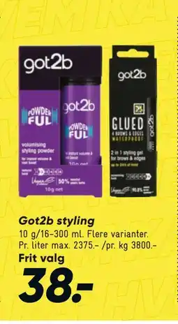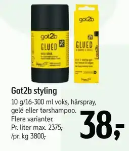 Føtex Got2b styling 16-300 ml. - flere varianter tilbudGot2b styling 16-300 ml. - flere varianterFøtex39,00 kr.21 juli 202303 august 2023