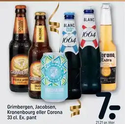 REMA 1000 Grimbergen, Jacobsen, Kronenbourg eller Corona 33 cl. Ex. pant tilbud