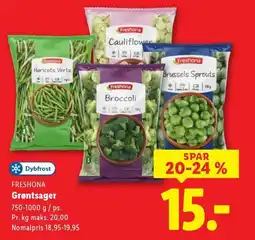1Lidl FRESHONA Grøntsager tilbudFRESHONA Grøntsager 750 - 1000 gLidl35,00 kr.15,00 kr.20,00 kr. Rabat20 februar 202628 februar 2026 Se tilbud