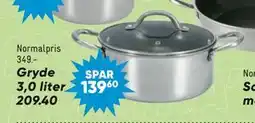 | Gryde 3 L | Bilka | 349,00 kr. | 209,40 kr. | 139,60 kr. Rabat | 27 marts 2026 | 05 april 2026 | |