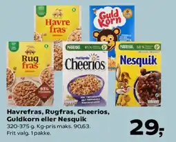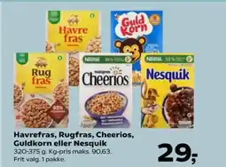 | Havrefras, Rugfras, Cheerios, Guldkorn eller Nesquik 320-375 g | SuperBrugsen | 29,00 kr. | 30 januar 2026 | 05 februar 2026 | |||
