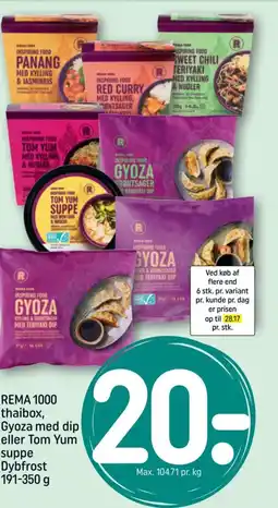 REMA 1000 REMA 1000 thaibox, Gyoza med dip eller Tom Yum suppe Dybfrost 191-350 g tilbud