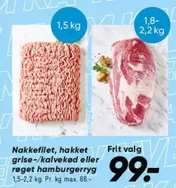 Føtex Røget hamburgerryg, hakket gris/kalvekød eller dansk hakket kød tilbudRøget hamburgerryg, hakket gris/kalvekød eller dansk hakket kød 1,5-2,2 kgFøtex112,50 kr.99,00 kr.13,50 kr. Rabat30 januar 202612 februar 2026