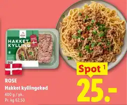 1Lidl ROSE Hakket kyllingekød tilbudROSE Hakket kyllingekød 400 gLidl25,00 kr.26 april 202602 maj 2026 Se tilbud
