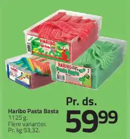 | Haribo Pasta Basta 1125 g | Fleggaard | 59,99 kr. | 08 april 2026 | 28 april 2026 | |||