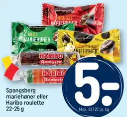 | Spangsberg mariehøner eller Haribo roulette 22 - 25 g | REMA 1000 | 5,00 kr. | 08 marts 2026 | 14 marts 2026 | |||