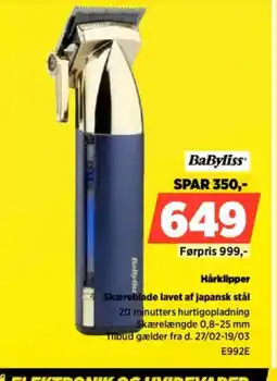 | BaByliss Hårklipper E992E | Power | 999,00 kr. | 649,00 kr. | 350,00 kr. Rabat | 03 april 2026 | 09 april 2026 | |