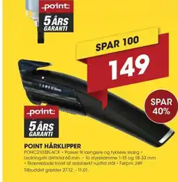 Punkt1 POINT HÅRKLIPPER tilbudPOINT HÅRKLIPPERPunkt1149,00 kr.02 december 202408 december 2024