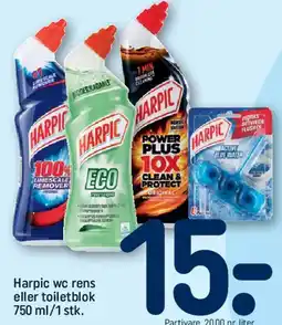 REMA 1000 Harpic wc rens eller toiletblok 750 ml/1 stk, DKK 15 tilbudHarpic wc rens eller toiletblok 750 ml/1 stk, DKK 15REMA 100015,00 kr.26 oktober 202501 november 2025