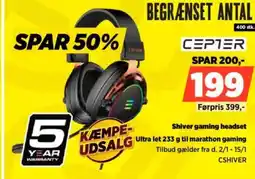 Denne uge finder du flere tilbud på Headset hos blandt andet Power og andre store kæder. Der er kampagner som 25 procent rabat, op til 40 procent besparelse eller ekstra lave priser på CEPTER Gaming headset CTETRA, CEPTER Shiver gaming headset CSHIVER og ODO trådløst gaming headset DGODO. Du kan filtrere efter type, størrelse eller forhandler.