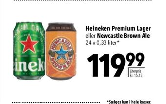 | Heineken Premium Lager eller Newcastle Brown Ale 24 x 0,33 liter* | Citti | 119,99 kr. | 11 juli 2023 | 01 august 2023 | |||