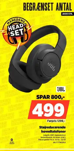 | 1 | JBL Støjreducerende ET hovedtelefoner | Power | 1.299,00 kr. | 499,00 kr. | Spar 800,- | 16 januar 2026 | 22 januar 2026 | Se tilbud | |