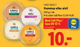 4Lidl CHEF SELECT Hummus eller aioli tilbudCHEF SELECT Hummus eller aioli 200 gLidl12,50 kr.10,00 kr.Spar 20-33%27 december 202531 december 2025 Se tilbud