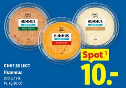 3Lidl CHEF SELECT Hummus tilbudCHEF SELECT Hummus 200 gLidl10,00 kr.19 april 202625 april 2026 Se tilbud
