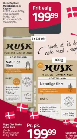 Denne uge finder du flere tilbud på Husk hos blandt andet MENY og andre store kæder. Der er kampagner som 25 procent rabat, op til 40 procent besparelse eller ekstra lave priser på HUSK ELLER MÖLLER’S TRAN, HUSK Psyllium / Mavebalance og Husk Psyllium Mavebalance el. Kapsler. Du kan filtrere efter type, størrelse eller forhandler.