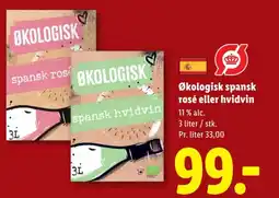 1Lidl Økologisk spansk rosé eller hvidvin tilbudØkologisk spansk rosé eller hvidvin 3 LLidl99,00 kr.30 april 202602 maj 2026 Se tilbud