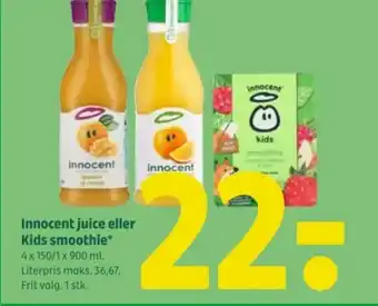 | INNOCENT juice eller Kids smoothie 4 x 150/ 1 x 900 ml | Coop 365 | 20,00 kr. | 15 maj 2025 | 21 maj 2025 | |||