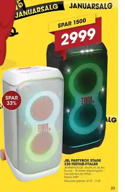 | JBL PARTYBOX 310 højttaler 68,77 cm | Power | 4.499,00 kr. | 2.499,00 kr. | SPAR 2000,- | 02 december 2025 | 24 december 2025 |