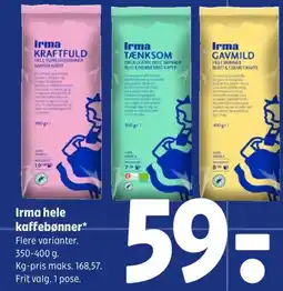 Kvickly Irma formalet eller hele kaffebønner tilbudIrma formalet eller hele kaffebønner 350-500 gKvickly59,00 kr.17 april 202623 april 2026