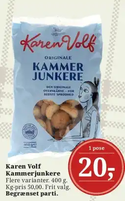 SuperBrugsen Karen Volf Kammerjunkere tilbudKaren Volf Kammerjunkere 300-400 gSuperBrugsen20,00 kr.07 april 202616 april 2026