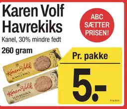 1ABC Lavpris Karen Volf Havrekiks tilbudKaren Volf Havrekiks 260 gABC Lavpris5,00 kr.22 april 202628 april 2026 Se tilbud
