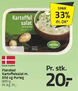 | Flensted Kartoffelsalat m. Dild og Purløg 800 g | Fleggaard | 29,85 kr. | 20,00 kr. | SPAR 33% | 08 april 2026 | 28 april 2026 | |