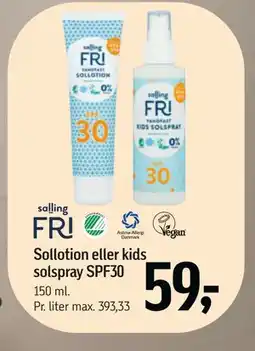 | Sollotion eller kids solspray SPF30 150 ml | Føtex | 59,00 kr. | 30 januar 2026 | 12 februar 2026 | |||
