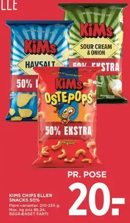 | KIMS CHIPS, SNACKS ELLER NØDDER 80-235 g | MENY | 29,95 kr. | 11,95 kr. | Spar 18.00 kr. | 27 december 2025 | 31 december 2025 | |