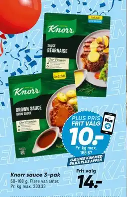 | Knorr sauce 3-pak 60-108 g. | Bilka | 10,00 kr. | 28 november 2025 | 04 december 2025 | |||