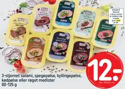 REMA 1000 3-stjernet salami, spegepølse, kyllingepølse, kødpølse eller røget medister 80-125 g tilbud