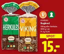 | Kohberg rugbrød (Herkules / Viking) 1000 g | Lidl | 15,00 kr. | 01 februar 2026 | 07 februar 2026 | |||