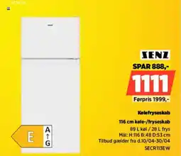 SENZ 116 cm køle-/fryseskab SECR113EW