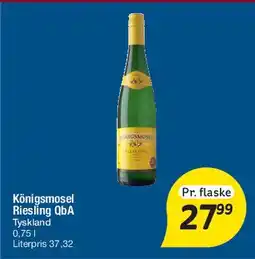 REMA 1000 Königsmosel Riesling Tyskland 75 cl, DKK 39 tilbudKönigsmosel Riesling Tyskland 75 cl, DKK 39REMA 100039,00 kr.05 oktober 202511 oktober 2025