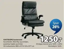 | KASTBJERG kontorstol 1 stk. | JYSK | 1.699,00 kr. | 1.250,00 kr. | 449,00 kr. Rabat | 17 april 2026 | 30 april 2026 | |