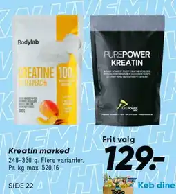 | Kreatin marked 248-330 g | Bilka | 99,00 kr. | 23 januar 2026 | 29 januar 2026 | |||