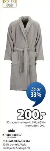 | KronBorg Of Denmark Timmerdala Badekåbe | JYSK | 229,00 kr. | 165,00 kr. | 64,00 kr. Rabat | 26 august 2022 | 06 september 2022 | |
