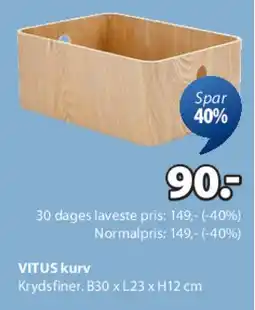 1JYSK VITUS kurv tilbudVITUS kurvJYSK90,00 kr.31 december 202515 januar 2026 Se tilbud