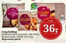 Denne uge finder du flere tilbud på Kylling hos blandt andet Lidl og andre store kæder. Der er kampagner som 25 procent rabat, op til 40 procent besparelse eller ekstra lave priser på Hel kylling, Coop kylling og Crispy Kylling. Du kan filtrere efter type, størrelse eller forhandler.