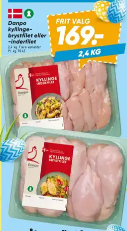 | Danpo kyllinge- brystfilet eller -inderfilet 2.4 kg | Bilka | 169,00 kr. | 13 marts 2026 | 19 marts 2026 | |||