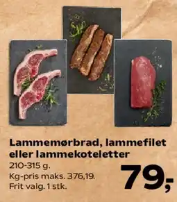 SuperBrugsen Lammemørbrad, lammefilet eller lammekoteletter tilbudLammemørbrad, lammefilet eller lammekoteletter 210-315 gSuperBrugsen79,00 kr.29 august 202504 september 2025