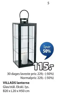 | VILLADS lanterne, DKK 135 | JYSK | 135,00 kr. | 05 september 2025 | 18 september 2025 | |||