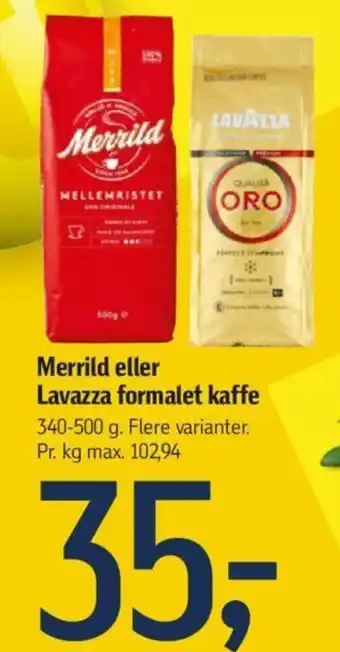 | Merrild eller Lavazza formalet kaffe | Føtex | 35,00 kr. | 15 marts 2024 | 21 marts 2024 | |||