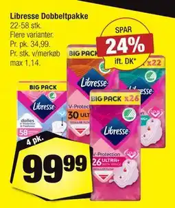 1Calle Libresse Dobbeltpakke tilbudLibresse Dobbeltpakke 4 stk.Calle99,99 kr.02 januar 202627 januar 2026 Se tilbud