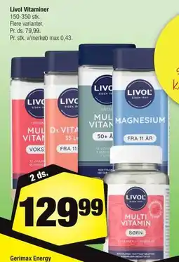 | Livol Vitaminer 2 stk. | Calle | 129,99 kr. | 04 marts 2026 | 17 marts 2026 | |||