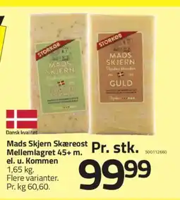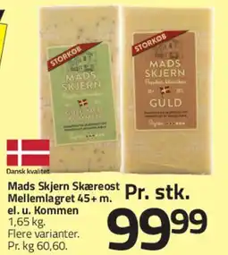| Mads Skjern Skæreost Mellemlagret 45+ m. el. u. Kommen, DKK 109.99 | Fleggaard | 109,99 kr. | 06 august 2025 | 19 august 2025 | |||