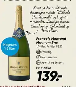 | Francois Montand Magnum Brut 1.5 L | Bilka | 139,00 kr. | 24 april 2026 | 30 april 2026 | |||