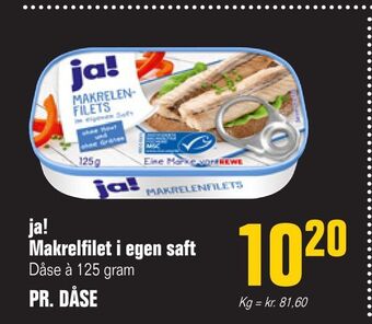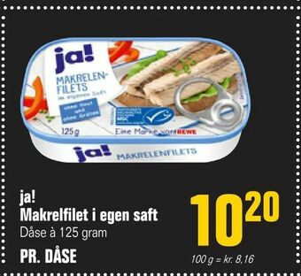 ![]() | ja! Makrelfilet i egen saft | Otto Duborg | 9,75 kr. | 30 oktober 2024 | 20 november 2024 | ||