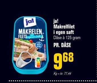 ![]() | Ja! makrelfilet i olie | Otto Duborg | 9,68 kr. | 31 maj 2023 | 20 juni 2023 | ||