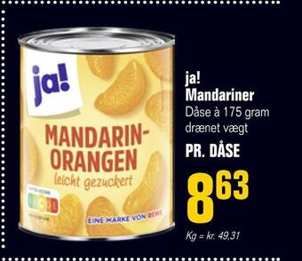 | Ja! Mandariner 175 g | Otto Duborg | 6,68 kr. | 31 juli 2025 | 27 august 2025 | |||
