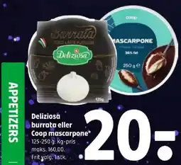 Coop 365 Deliziosa burrata eller Coop mascarpone tilbud